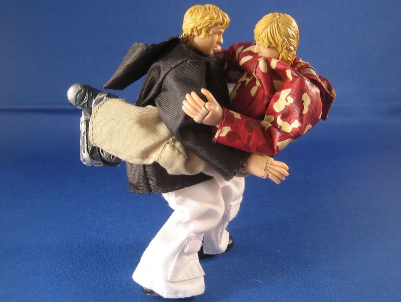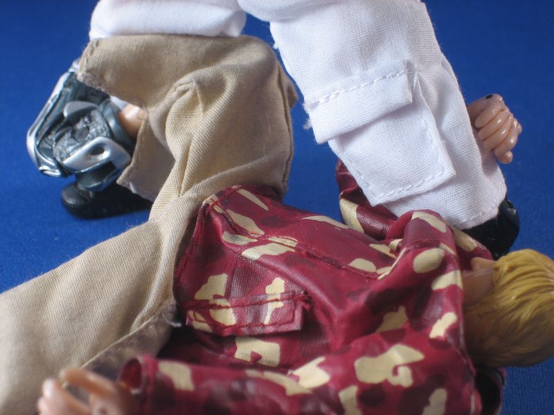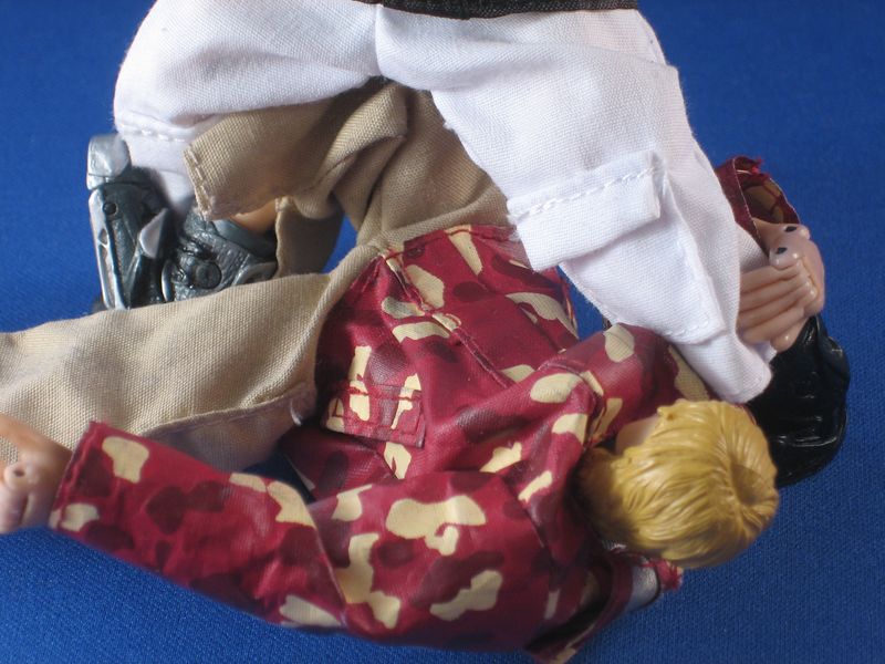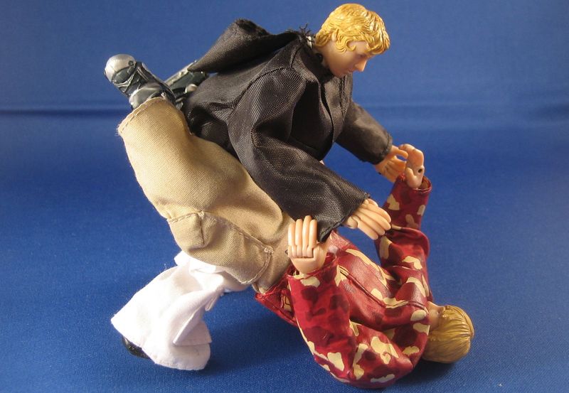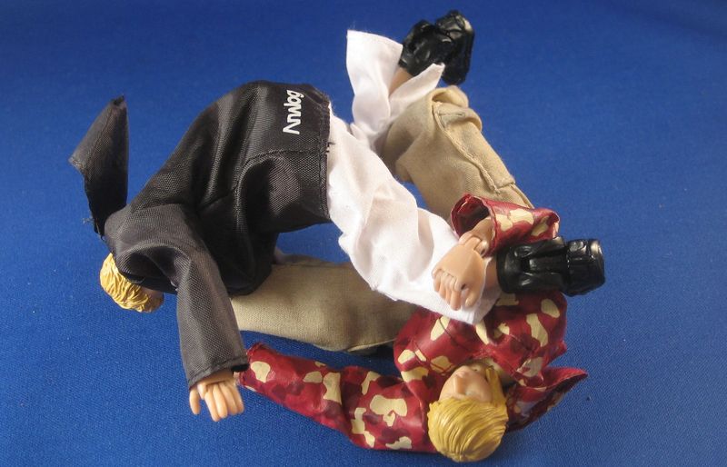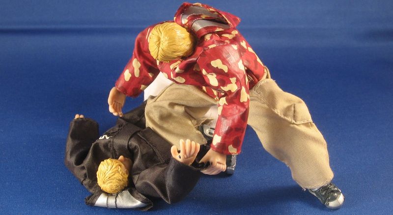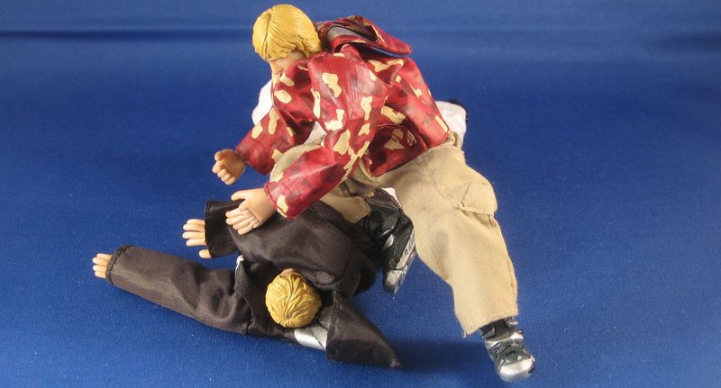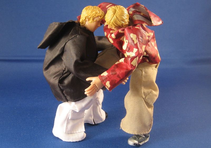 Noob and Boarder start standing. Boarder has a grip on Noob’s lapel.