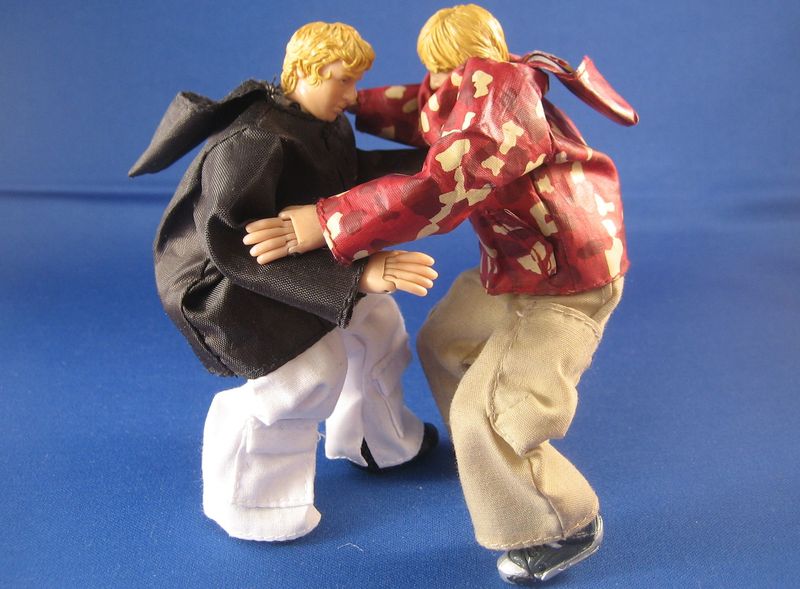 The position should look like this, but with Boarder’s left hand gripping Noob’s right sleeve.