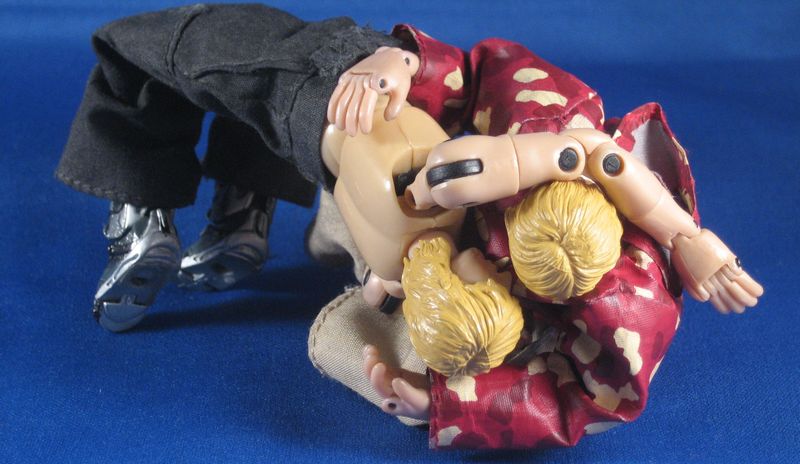 …As Boarder simply pushes Nogi back down flat on the mat. But Nogi has managed to sneak his right arm between Boarders legs. Let’s call this step Woo.